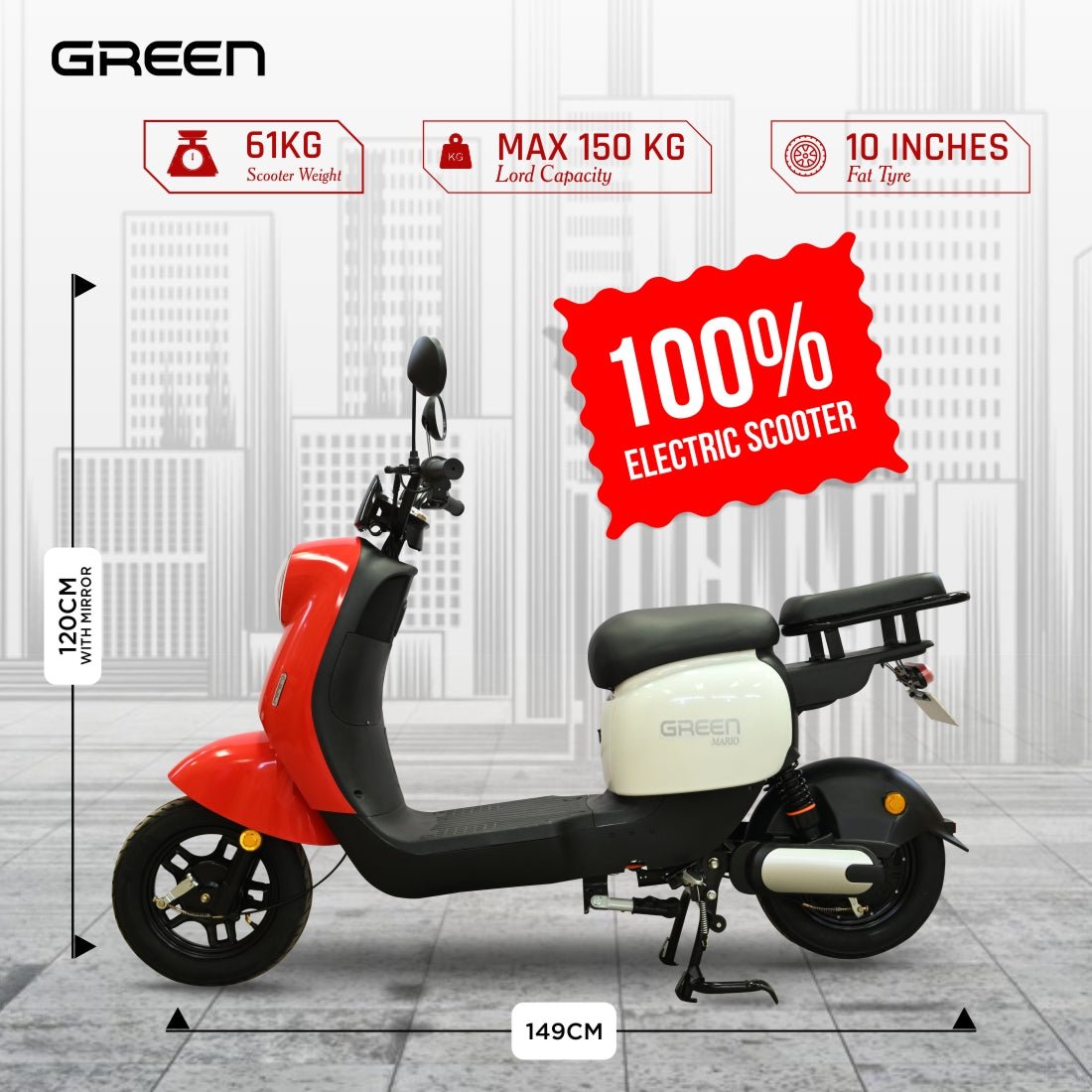 Green Mario 60kms Range Electric Scooter