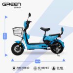 The Green Udaan Electric Scooter offers an eco-friendly, efficient solution for daily commuting, with an impressive 60 km range on a single charge. Designed for adult riders, this electric scooter reaches a top speed of 25 km/h, powered by a 250W motor, providing smooth and reliable rides. Best of all, there’s no need for RTO registration or a driving license, making this e-scooter an easy, hassle-free transportation option for all.