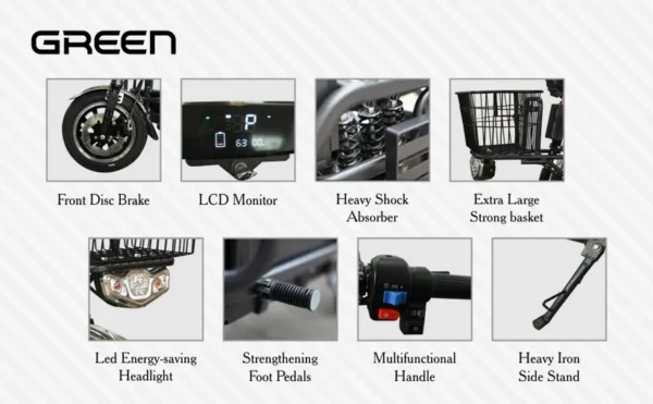 - FIXED RECHARGEABLE BATTERY: The lithium battery of the Green Electric Scooter is convenient. It takes 4 to 6 hours to charge, providing a range of up to 80 kilometers.